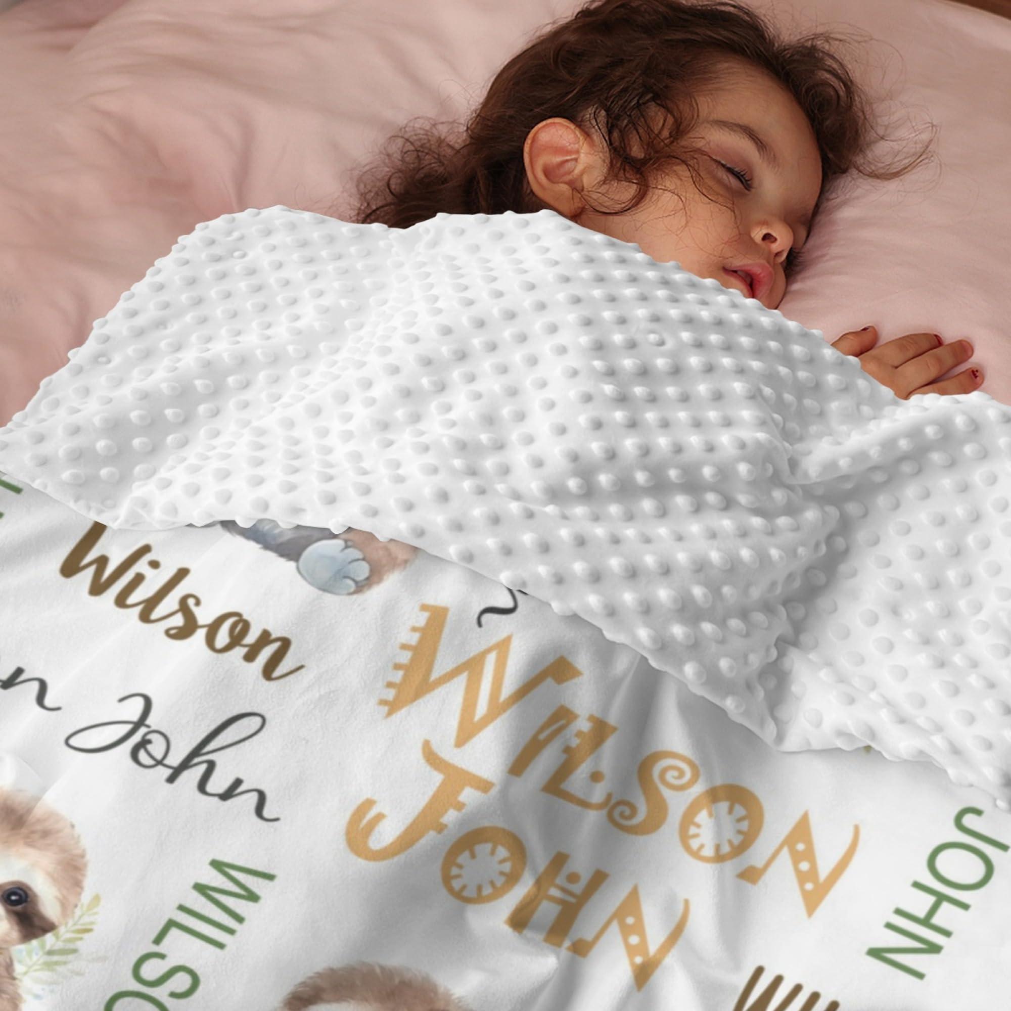 - Customizable Comfort: Add a personal touch to your baby's nursery with our personalized Minky blanket. Customize with your baby's name on our Sloth pattern, making it a unique keepsake