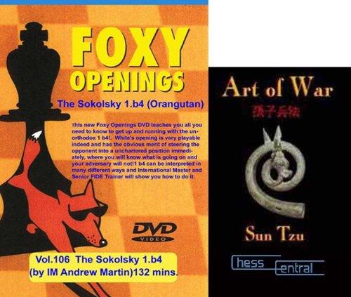 This Foxy Openings DVD teaches you all you need to know to get up and running with the unorthodox 1.b4!, the Sokolsky or "Orangutan" opening. White's opening is very playable; indeed and has the obvious merit of steering the opponent into a uncharted position immediately, where you will know what is going on and your adversary will not! 1.b4 can be interpreted in many different ways - there are gambits, opposite wing attacks, and quiet position play. White often ends up with a central pawn majority after exchanging his b-pawn for Black's c-pawn. In other lines, after b4-b5, the White pawn becomes a thorn in Black's side. On this DVD International Master and Senior FIDE Trainer Andrew Martin will show you how to do handle this unusual opening. Video running time: 2 hours 12 minutes. The Foxy Chess Openings Series is a timeless collection of Grandmaster openings explained simply enough to comprehend at any level. These DVDs will improve your rating and give you a greater understanding of the openings discussed, regardless of your present playing level. This fine DVD should be in every chess player's video library - but are you prepared for mental combat? To enhance your enjoyment we've included FREE the epic Art of War by Sun Tzu, completely re-mastered for the 21st century by ChessCentral. This e-book was taken from the first English translation by Lionel Giles, then painstakingly edited for textual errors while restoring Giles' beautiful rendering of the Chinese original. Not only has the full commentary by Giles been retained, but period Chinese art tastefully evokes the feel of Sun Tzu's masterpiece. Now you're ready to play chess!