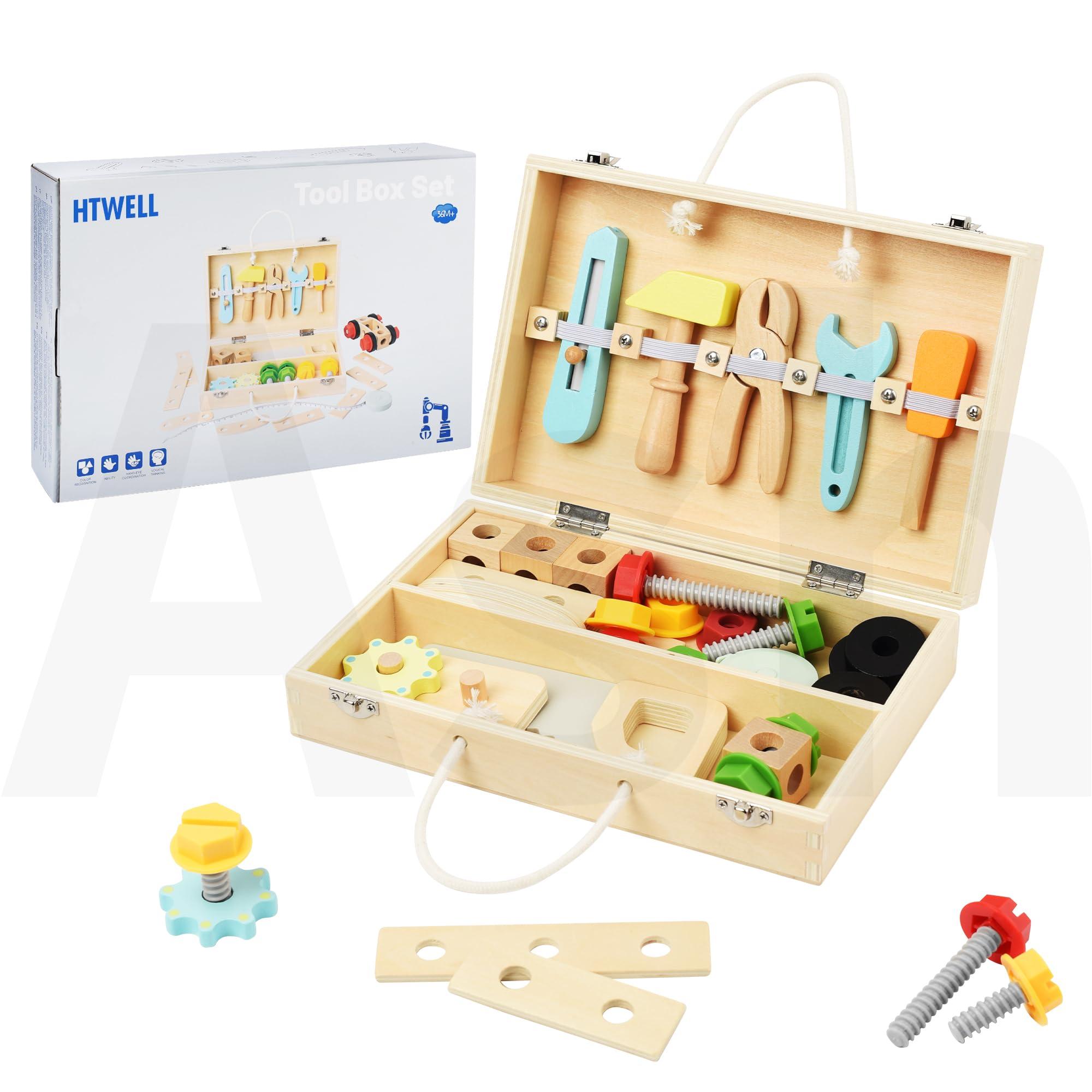 - Durable & Safe: Made of high quality PP plastic and smooth wood materials, our toddler wooden tool set ensures a safe and durable play experience for your child. During hands-on exploration, rounded corners and a child-friendly design prioritized safety.