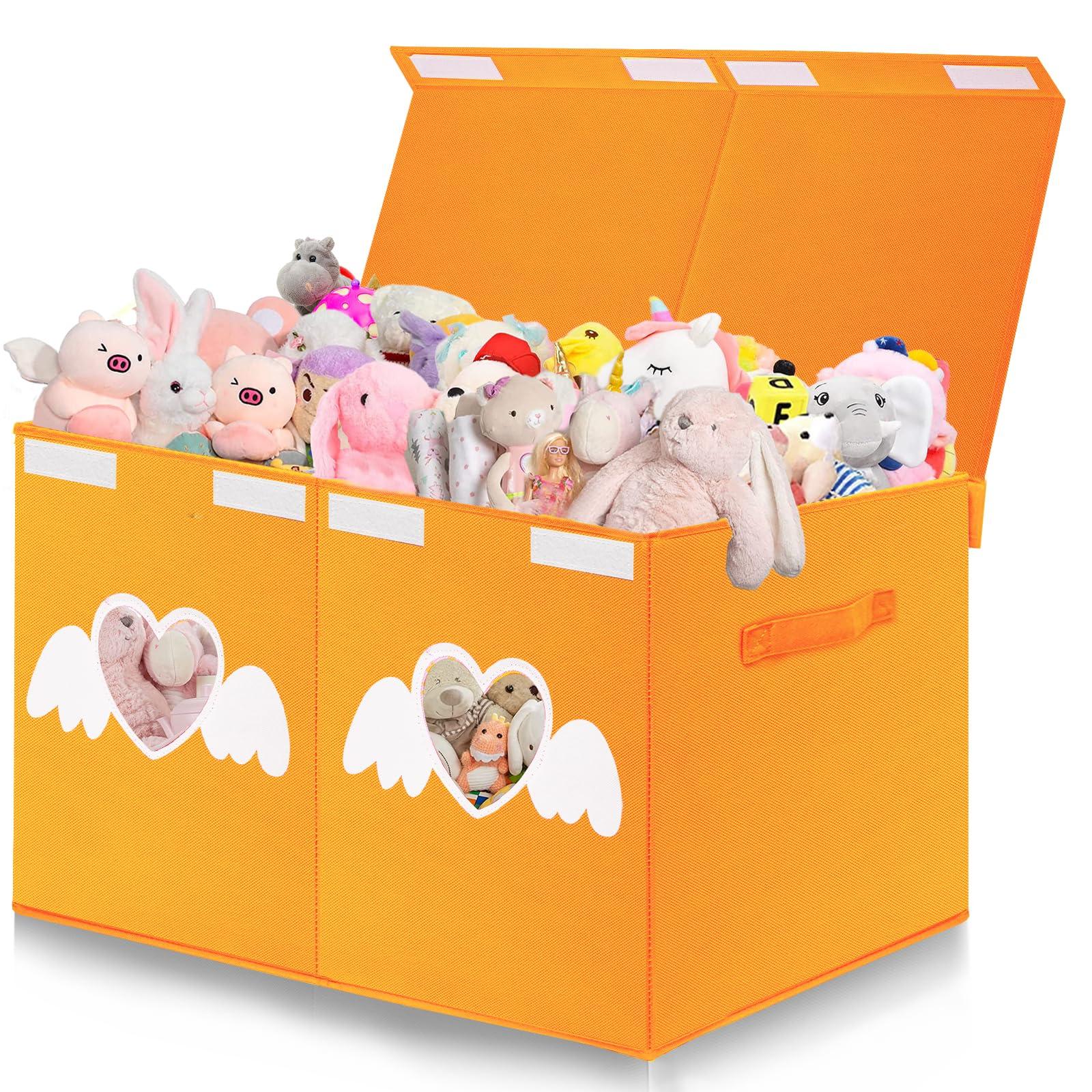 - Transparent Window - The clear see-through window is very user friendly for clear showing what is inside the storage boxes, easy to organize and easy to find. Cartoon shaped toys box with colorful fabric, not only as a toy storage box is also a room decoration, making your room more interesting and colorful sense.