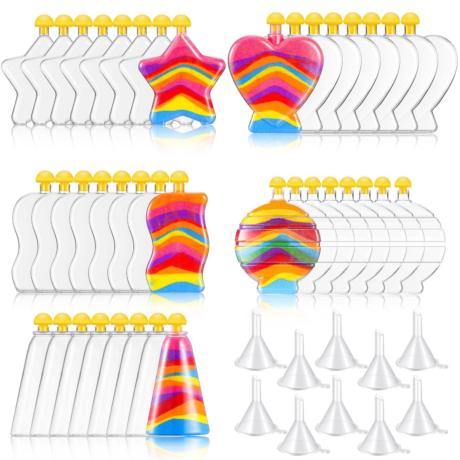 - Easy to Use: the use of this plastic bottles for sand art set is simple, and you only need to use a funnel to put sand of different colors (not included in the product) into the bottle, one set of 20 sand bottles holds a total of 81 ounces of sand