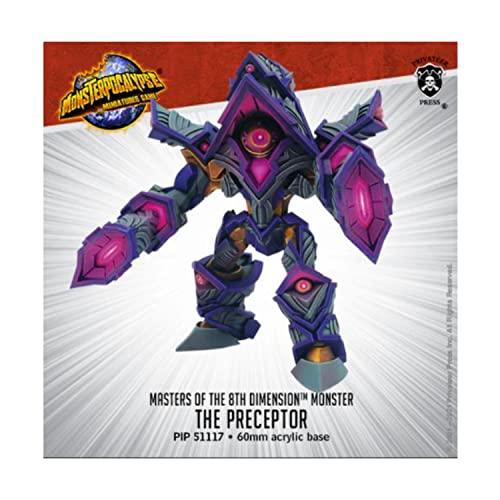 Of all those fighting over the future of Earth, the Masters of the 8th Dimension are surely the strangest. No formal dialog has been established with these beings, and their origin is not entirely understood, but their motivations are clear. They bear humanity no ill will, but they seek to eliminate the multiverse. They see the Monsterpocalypse as the focal point of much of that disturbance and have started their war with all of reality here. The first shot of that war was fired by The Preceptor, the leader of their forces and the monster sent to start teaching the universe to behave.