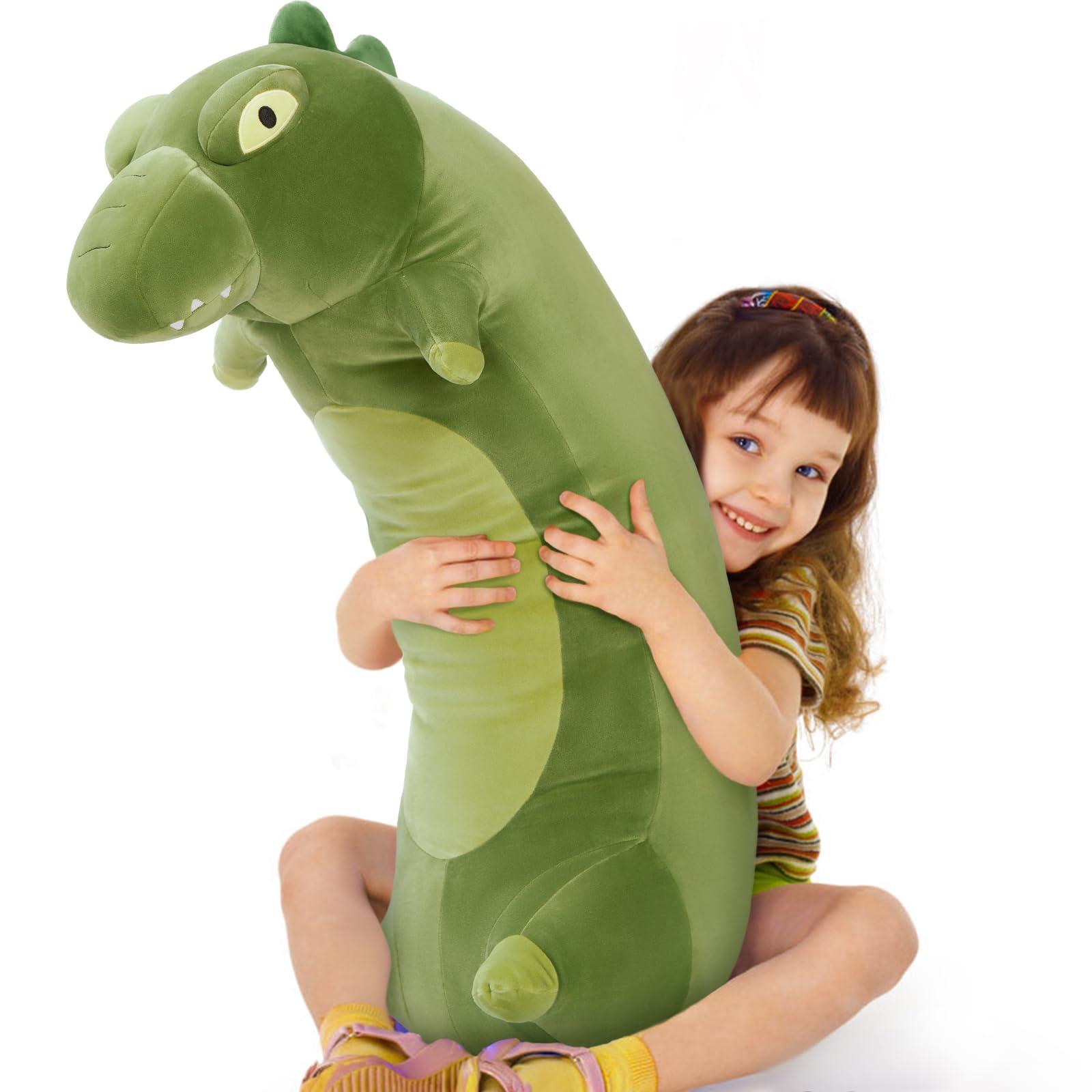 - Super Soft&Comfortable: The 39.5 inches giant crocodile plush pillow is made of skin-friendly and high-elastic, plush fabric, filled with pp cotton,which makes it soft and fluffy. When you hug and snuggle it, you will feel the comfort and softness. The pillow can quickly rebound when pressed or hugged,not easy to deform.
