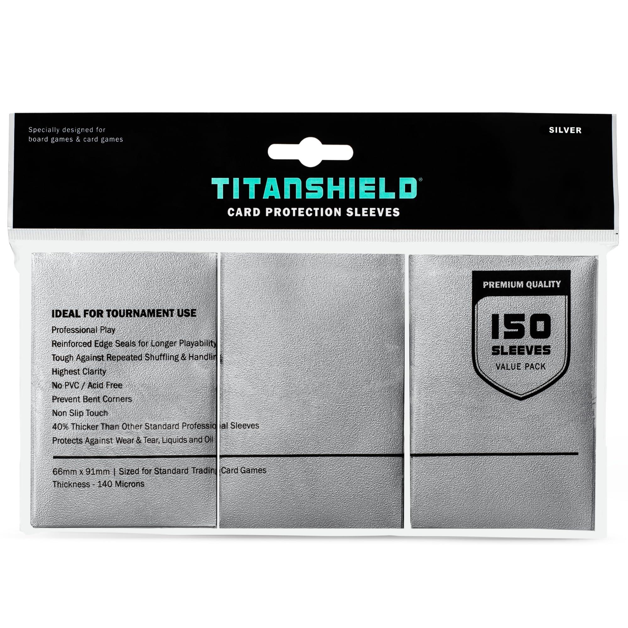 TitanShield (150 Silver Sleeves) Compatible with MTG Magic The Gathering, Lorcana, Board Games and Trading Cards 2.5" x 3.5" 66x91mm